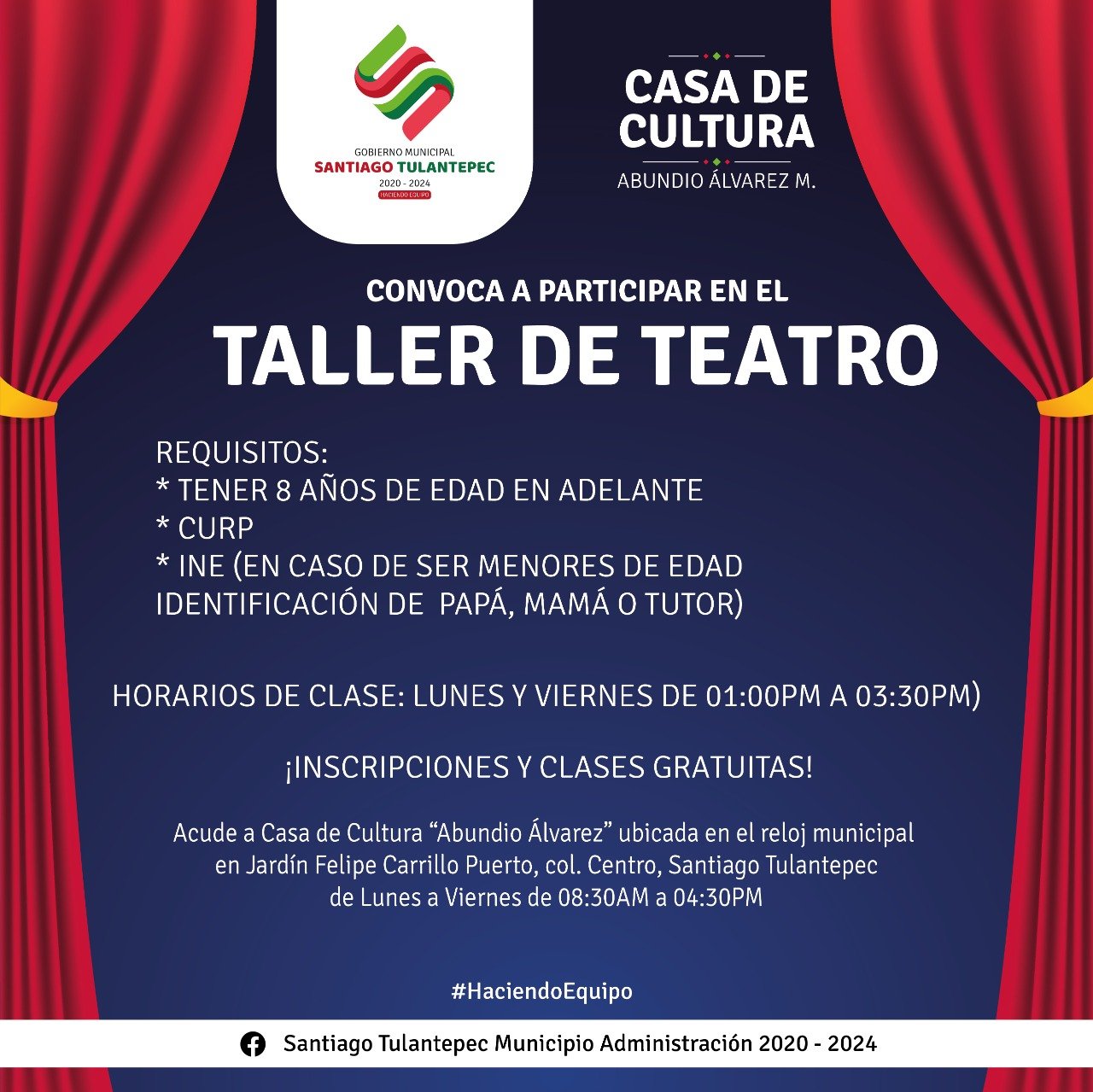 INVITAN A TALLER DE TEATRO EN SANTIAGO TULANTEPEC